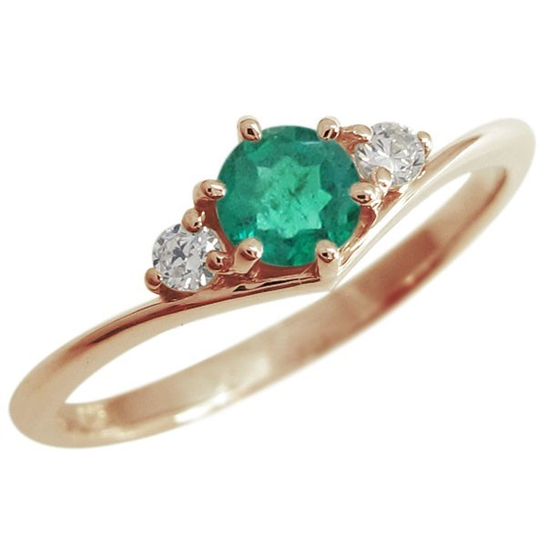 5月誕生石エメラルドを使用した10金製の、V字デザインリング(指輪)です。