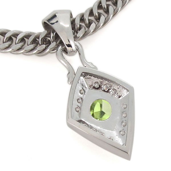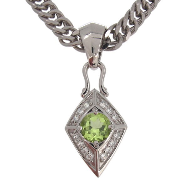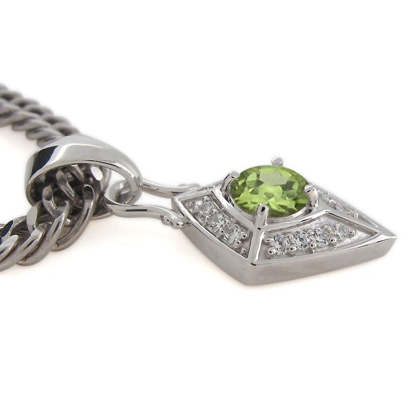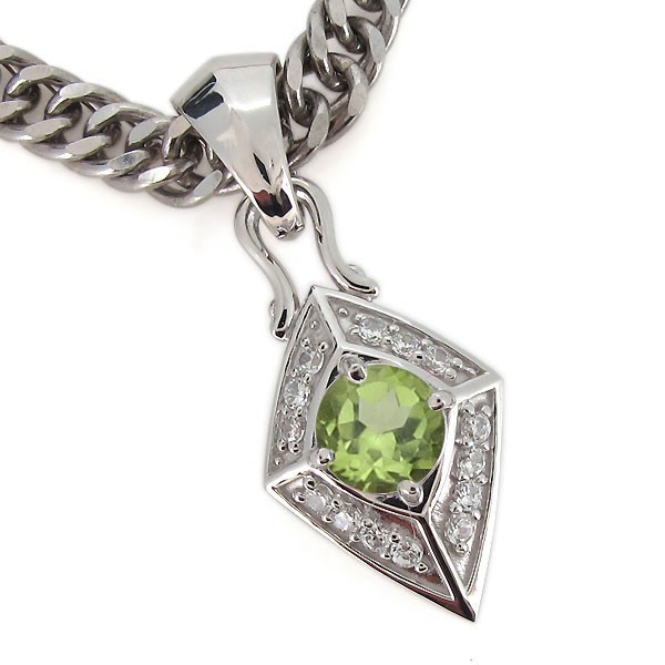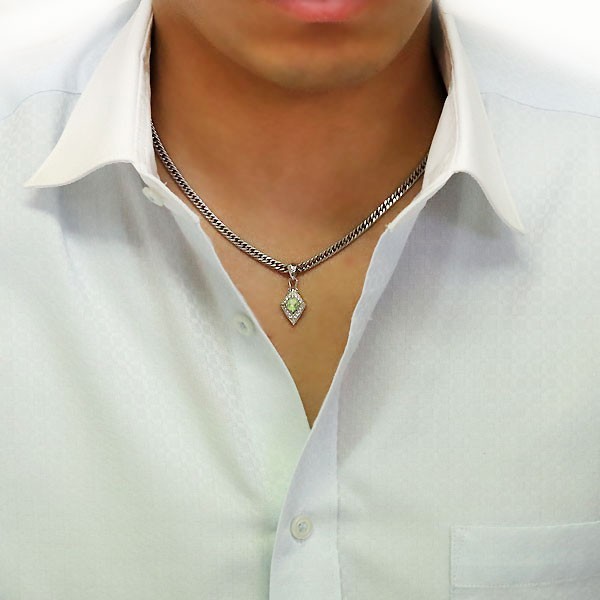 8月誕生石ペリドットを使用したシルバー製の、シンプルデザインメンズネックレス(ペンダント)です。
