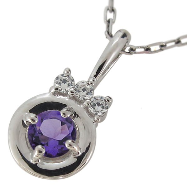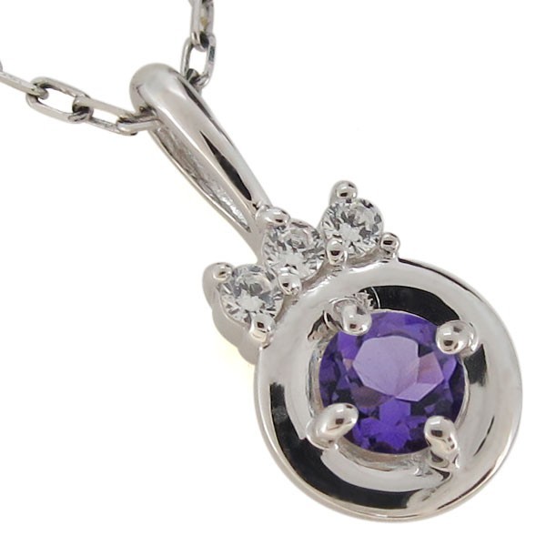 2月誕生石アメジストを使用したプラチナ製の、シンプルデザインレディースネックレス(ペンダント)です。