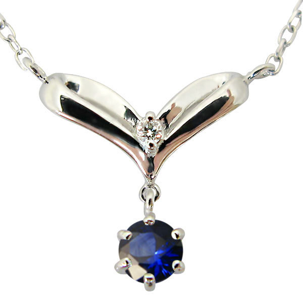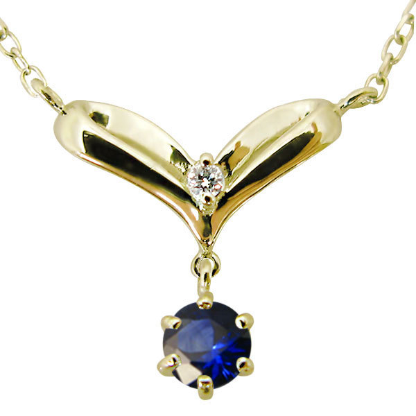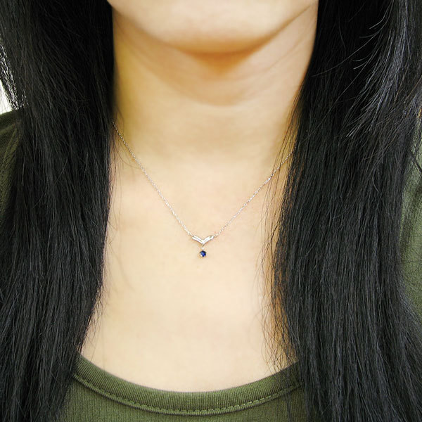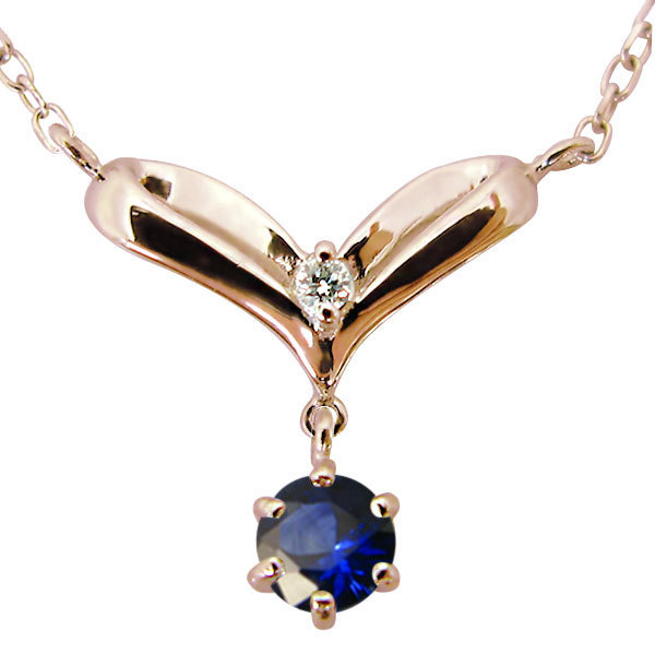 あなたの胸元を輝かせる9月誕生石サファイヤを使用したシンプルハートモチーフの、18金製ペンダントネックレスです。
