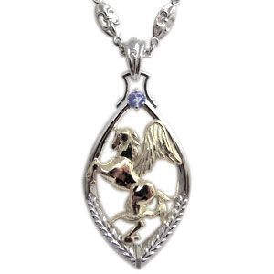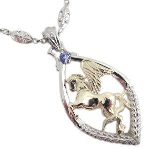 勇壮なペガサスに12月誕生石タンザナイトを一粒使用した、シルバー&K10イエローゴールド製のホース(馬)デザインメンズネックレスコンビペンダントです。
