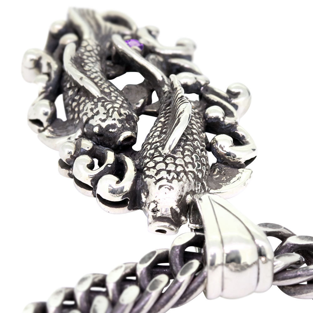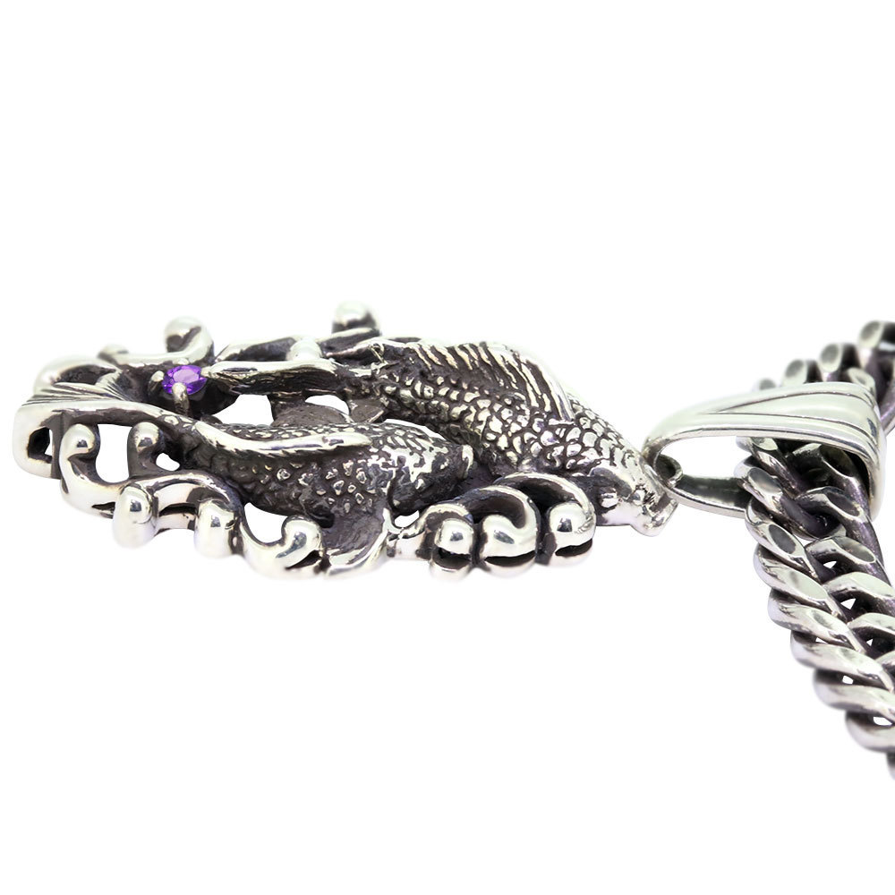 2月誕生石アメジストを使用したシルバー製の、鯉モチーフメンズペンダントヘッドです。