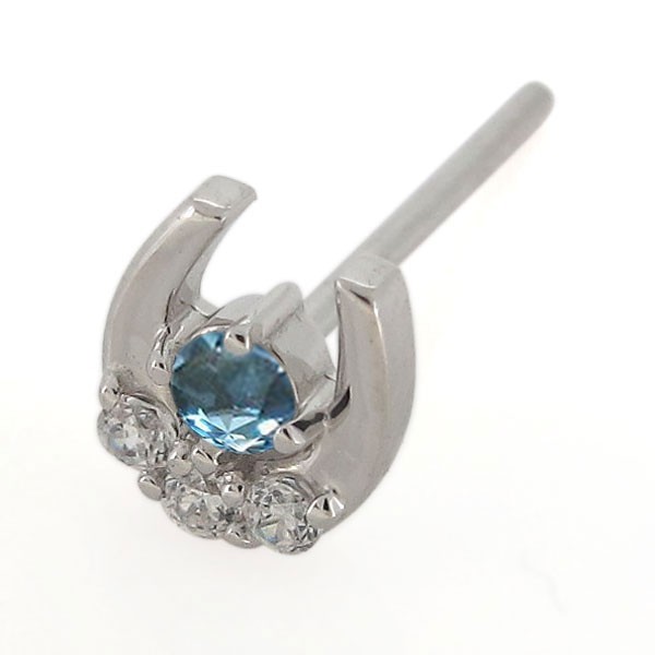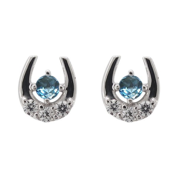 ホースシューモチーフ スタッドピアス ブルートパーズ プラチナ ピアス クリスマス ポイント消化