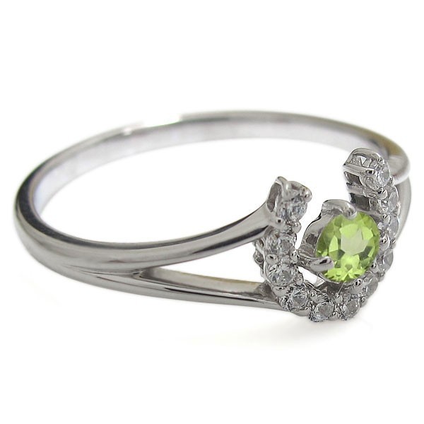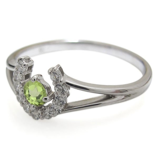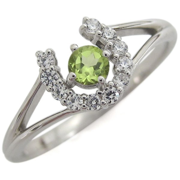 8月誕生石ペリドットを使用したプラチナ製の、馬蹄(ホースシュー)モチーフリング(指輪)です。