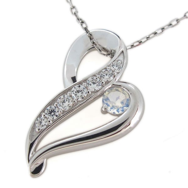 6月誕生石ロイヤルブルームーンストーンを使用したプラチナ製の、ハートモチーフネックレス・ペンダントです。