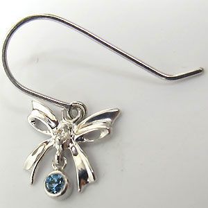 プラチナ アクアマリンサンタマリア リボン 一粒 ピアス クリスマス ポイント消化