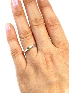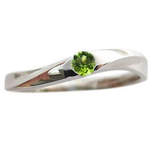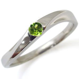 8月誕生石ペリドットを一粒使用したシンプルデザインの18金製リング(指輪)です。