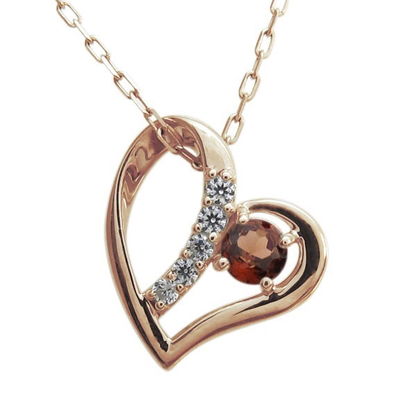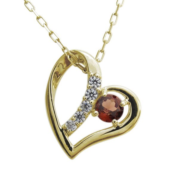 1月誕生石ガーネットを使用した10金製の、オープンハートをモチーフにしたネックレスペンダントです。