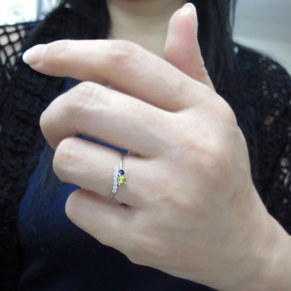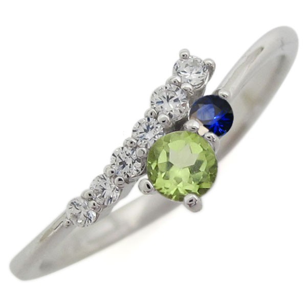 ■石名:主石 (大)ペリドット(約 3.0mm/天然石使用)(小)誕生石12石から選択可(約2.0mm/天然石使用)脇石 ダイヤモンド(6石合計で約 0.097ct/天然石使用)