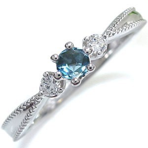 ■石名:ブルートパーズ(約 3.0mm/天然石使用)脇石 ダイヤモンド(2石で約合計0.05ct/天然石使用)