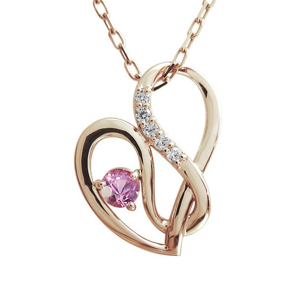 9月誕生石ピンクサファイアを使用した10金製のハートモチーフネックレスペンダントです。