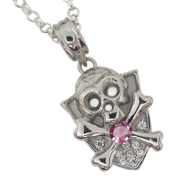 10月誕生石ピンクトルマリンを使用した、シルバー製のスカル(骸骨)モチーフメンズ・ネックレスペンダントです。