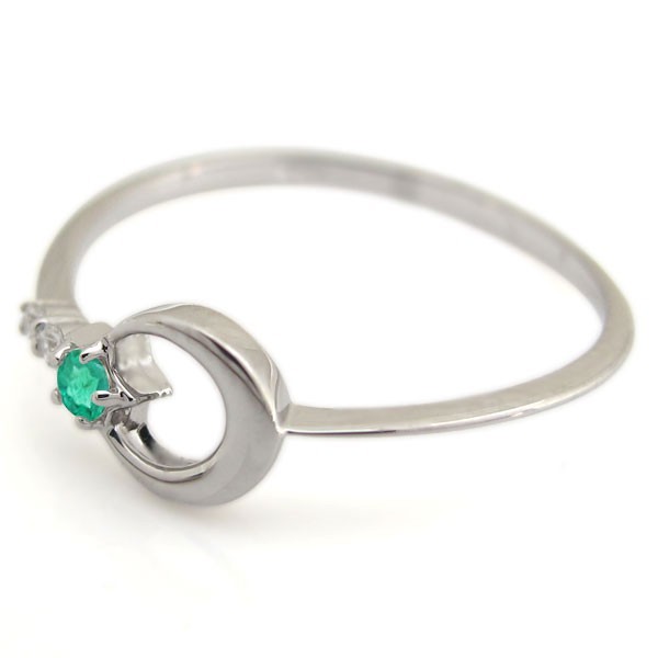 5月誕生石エメラルドを一粒使用した、シルバー製の三日月(ムーン)星(スター)モチーフリング(指輪)です。