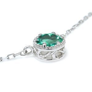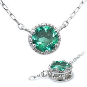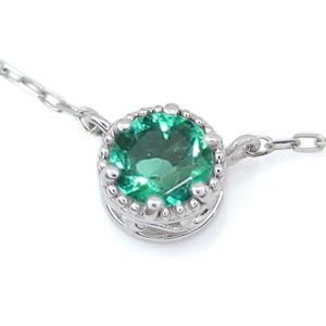 5月誕生石エメラルドを一粒使用した、唐草デザインの18金製ミル打ちネックレス・ペンダントです。