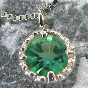 5月誕生石エメラルドを一粒使用したシンプルデザインのプラチナ製ペンダントネックレスです。