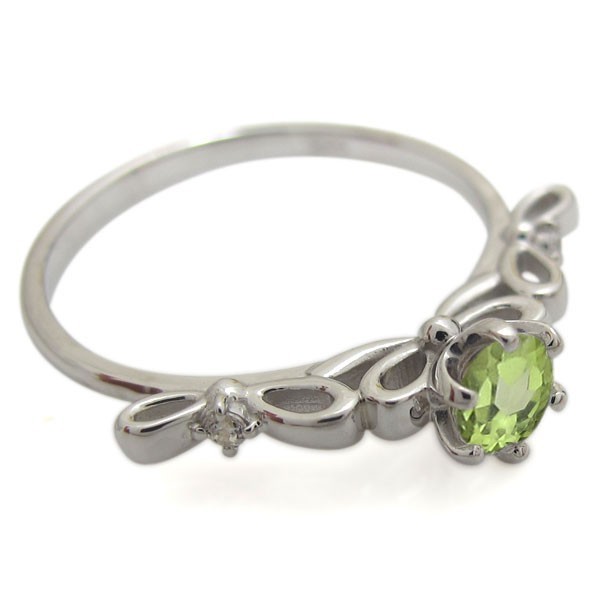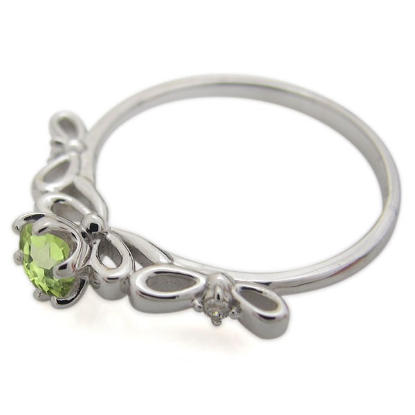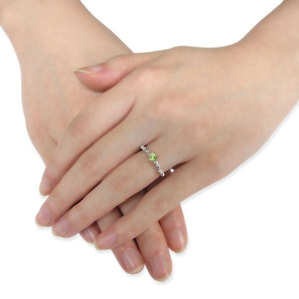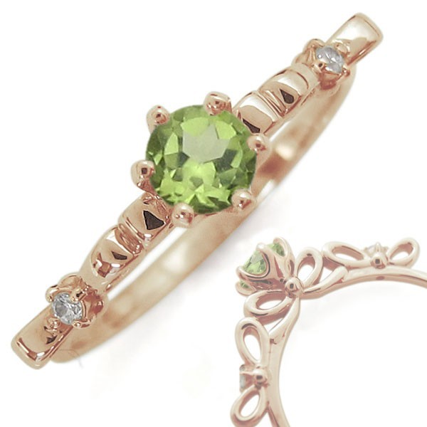 ■石名:主石 ペリドット(約 4.0mm/天然石使用)脇石 ダイヤモンド(2石合計で約 0.029ct/天然石使用)