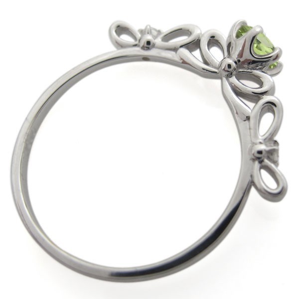 8月誕生石ペリドットを使用した10金製の、リボンモチーフリング(指輪)です。