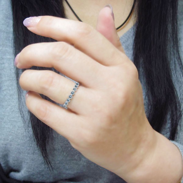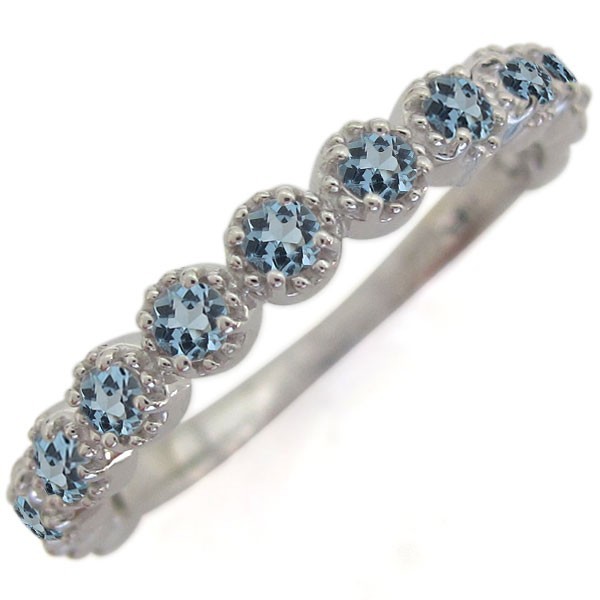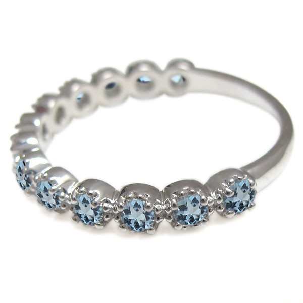 3月誕生石アクアマリンサンタマリアを使用したプラチナ製のハーフエタニティリング(指輪)です。