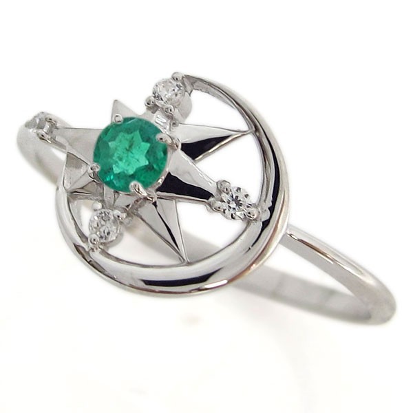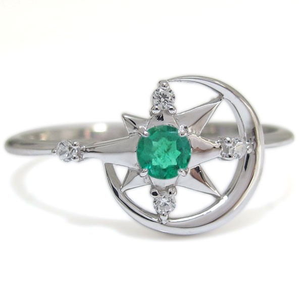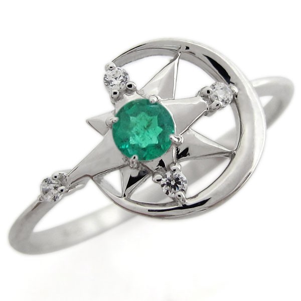 指輪 エメラルド 星 月 リング スター sv シルバー