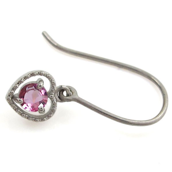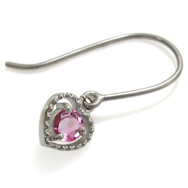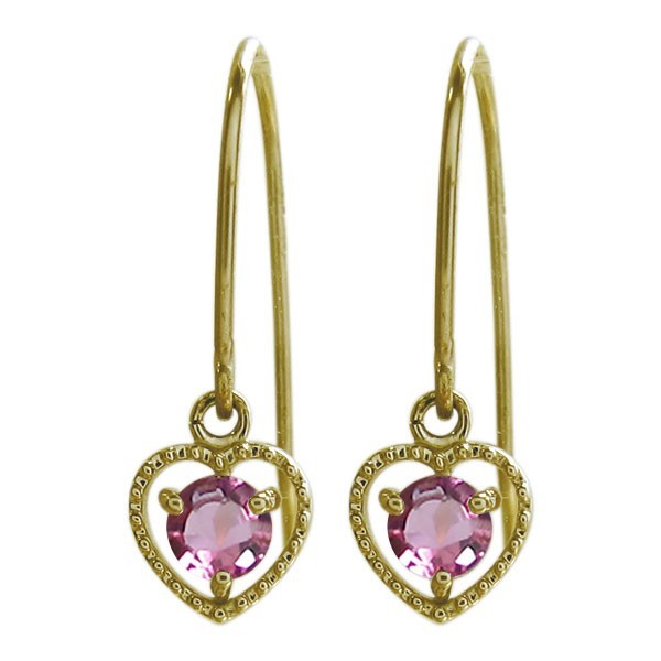 K18 ハート ピアス ピンクトルマリン 一粒 ピアス ミル打ち ピアス