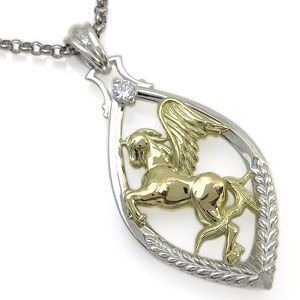 勇壮なペガサスに4月誕生石ダイヤモンドを一粒使用した、プラチナ製のホース(馬)デザインメンズネックレスペンダントです。