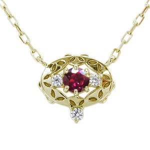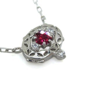 7月誕生石ルビーを一粒使用した、18金製アンティークデザインネックレス(ペンダント)です。