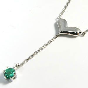 5月誕生石エメラルドを使用したハートモチーフの、プラチナ製ネックレスです。