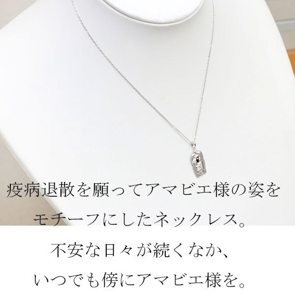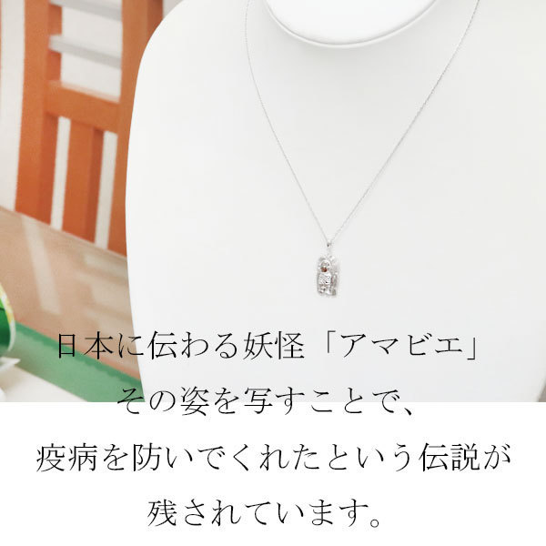 疫病退散のご利益を願い、日本に伝わる「妖怪アマビエ」をデザインしたネックレス。