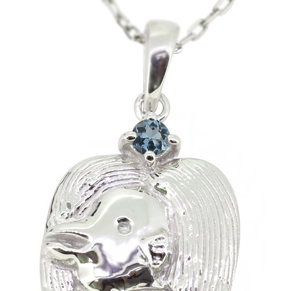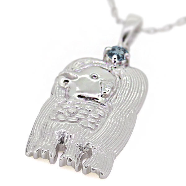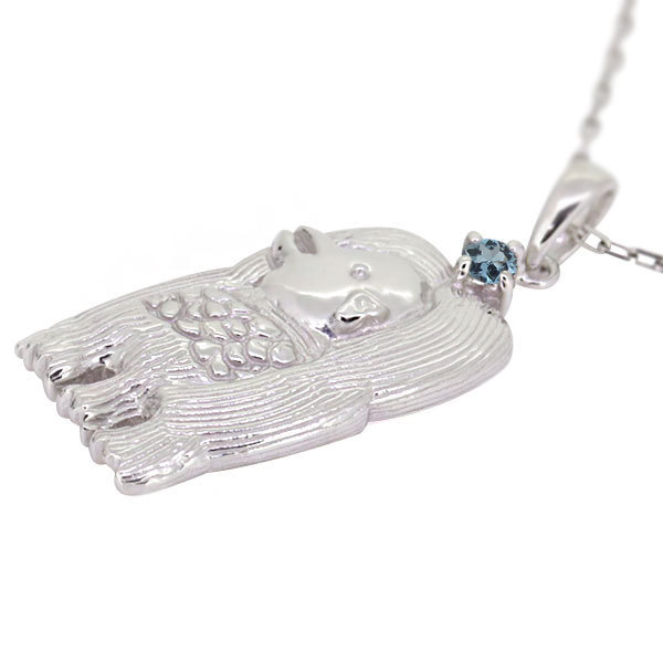 3月誕生石アクアマリンサンタマリアを一粒使用した、18金製のアマビエネックレス(ペンダント)です。