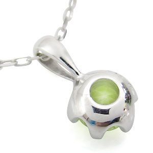 8月誕生石ペリドットを一粒使用した、プラチナ製のネックレスペンダントです。