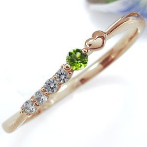 8月誕生石ペリドットを使用した、18金製のハートモチーフリング(指輪)です。