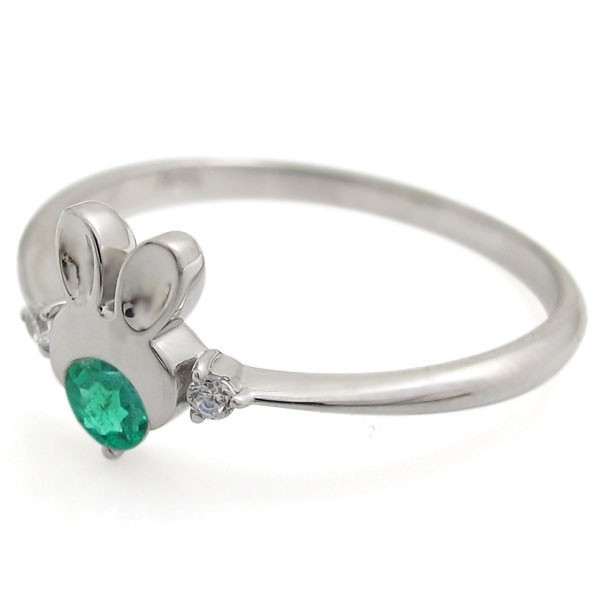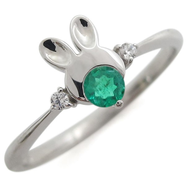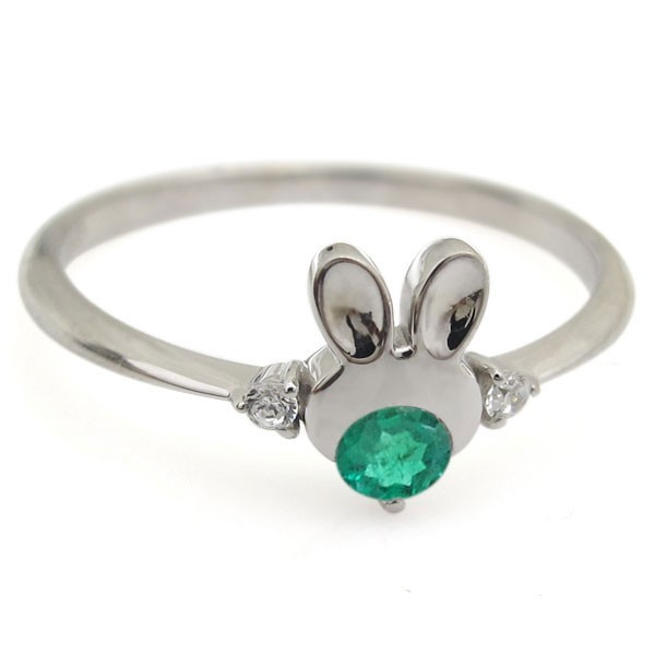 5月誕生石エメラルドを使用した、プラチナ製のうさぎ(ラビット)モチーフリング(指輪)です。