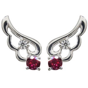 天使の羽 ルビー ピアス 一粒 エンジェル ピアス クリスマス ポイント消化