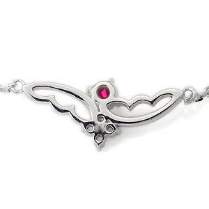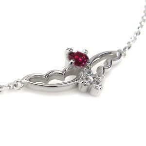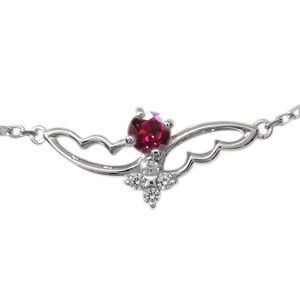 7月誕生石ルビーを一粒使用した、フェザーデザインのプラチナ製アンクレット(ブレスレット)です。