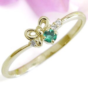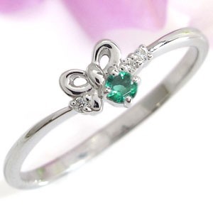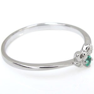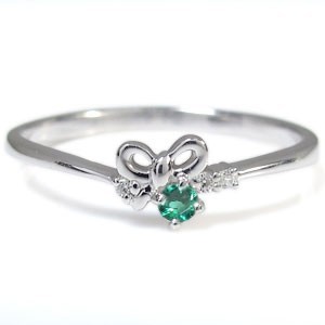 5月誕生石エメラルドを一粒使用した、シルバー製のリボンモチーフリング(指輪)です。