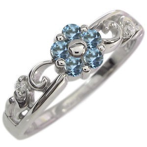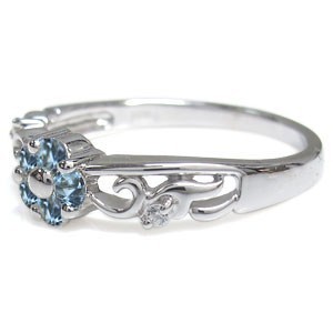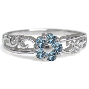 ■石名:主石 アクアマリンサンタマリア(約 2.0mm*5石/天然石使用)脇石 ダイヤモンド(2石合計で約 0.02ct/天然石使用)