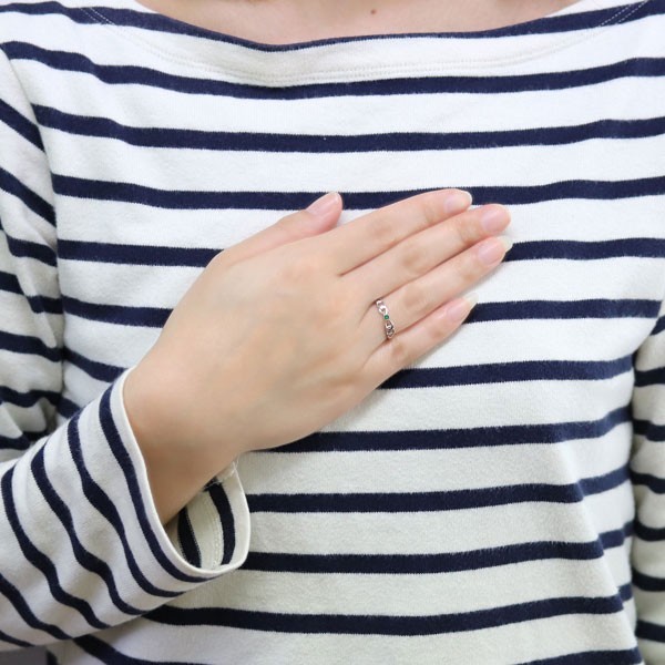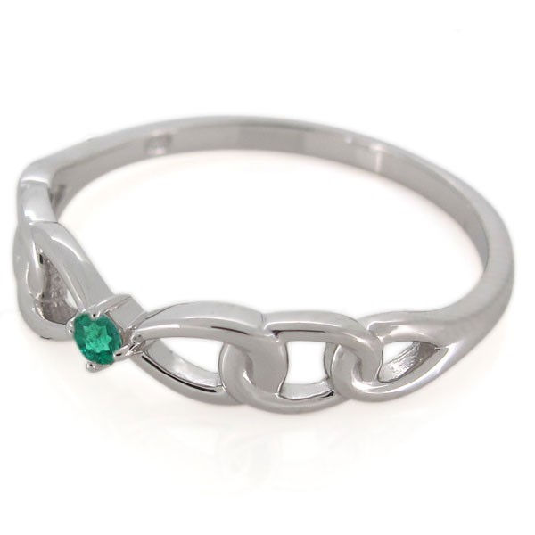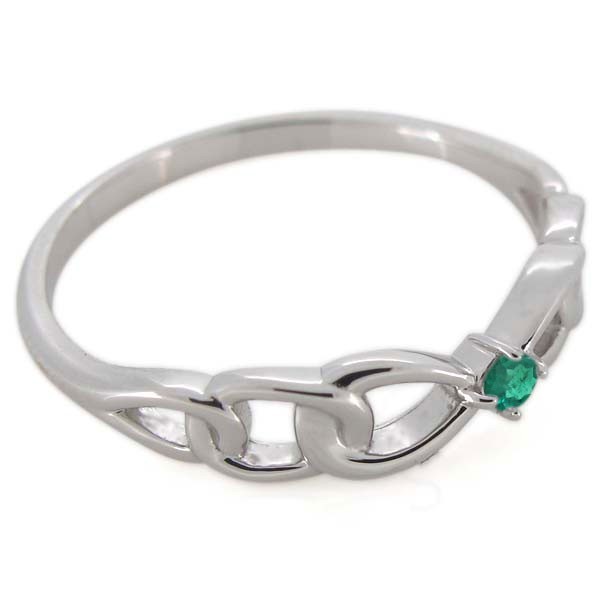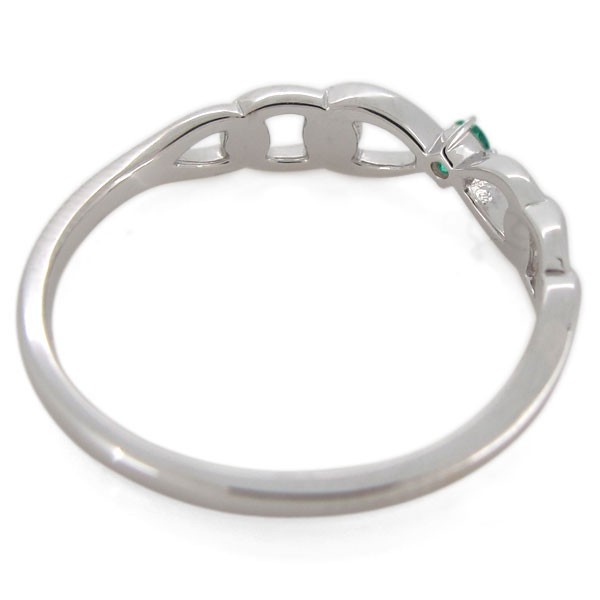 5月誕生石エメラルドを一粒使用した18金製の、リボンモチーフリング(指輪)です。