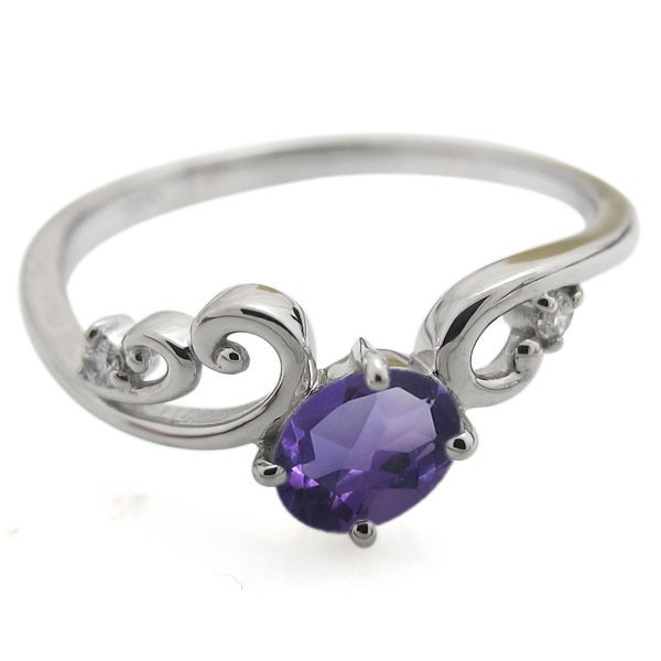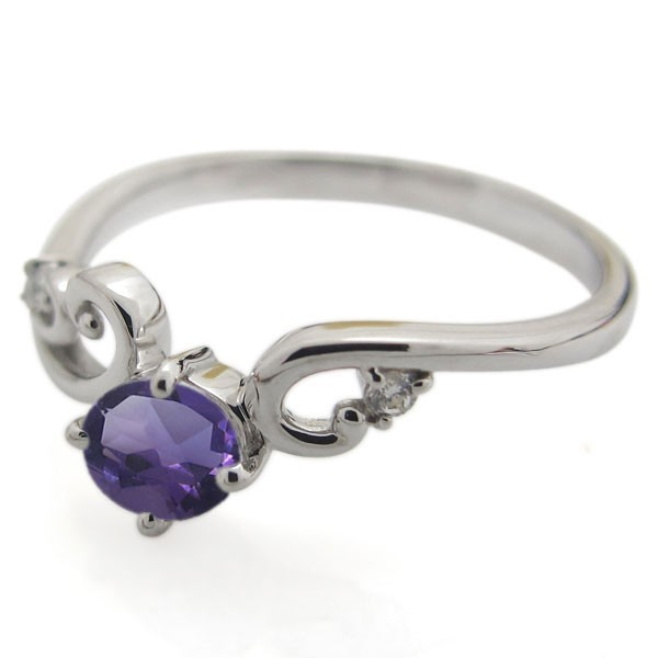 ■石名:主石 アメジスト(オーバル 約 4.0mm×5.0mm/天然石使用)脇石 ダイヤモンド(2石合計で約 0.029ct/天然石使用)