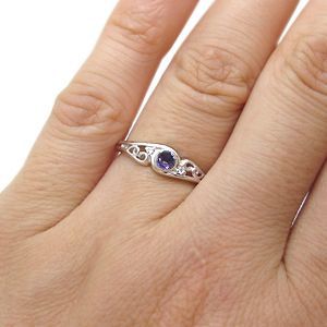 2月誕生石アメジストを一粒使用したアンティークデザインの10金製リングです。