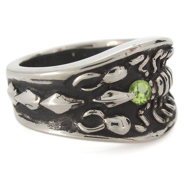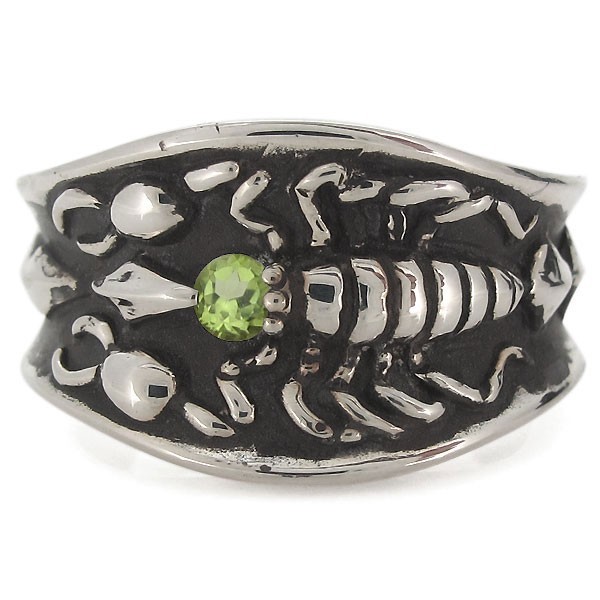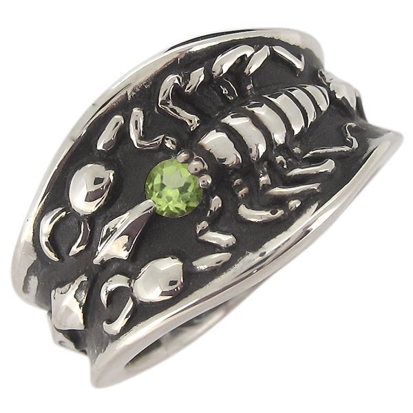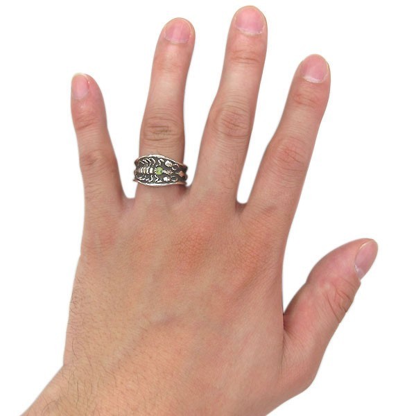 指輪 シルバー メンズ サソリ 蠍 スコーピオン ペリドット 8月誕生石