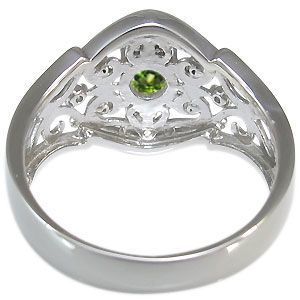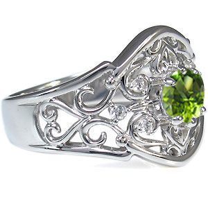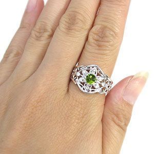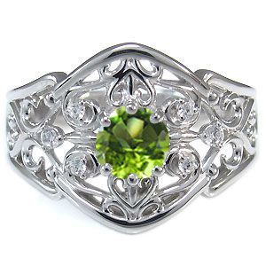 プラチナ 指輪 唐草 ペリドット リング 大粒 リング8月誕生石大粒ペリドットを一粒使用した、唐草デザインの華やかなプラチナ製リング(指輪)です。