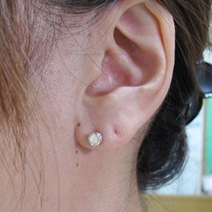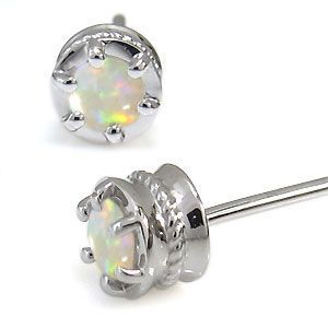 ピアス オパール 一粒 K18 シンプル ピアス