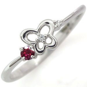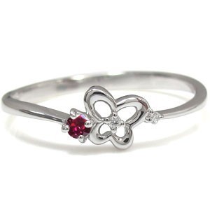 7月誕生石ルビーを一粒使用した、シルバー製のバタフライ(蝶)モチーフリング(指輪)です。