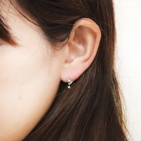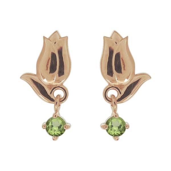 ペリドット ピアス 揺れる 18金 花 チューリップ モチーフ レディース