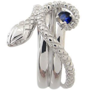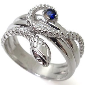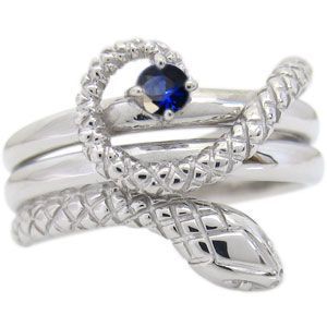 9月誕生石サファイアを一粒使用したスネーク(蛇)モチーフの18金製リングです。