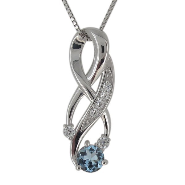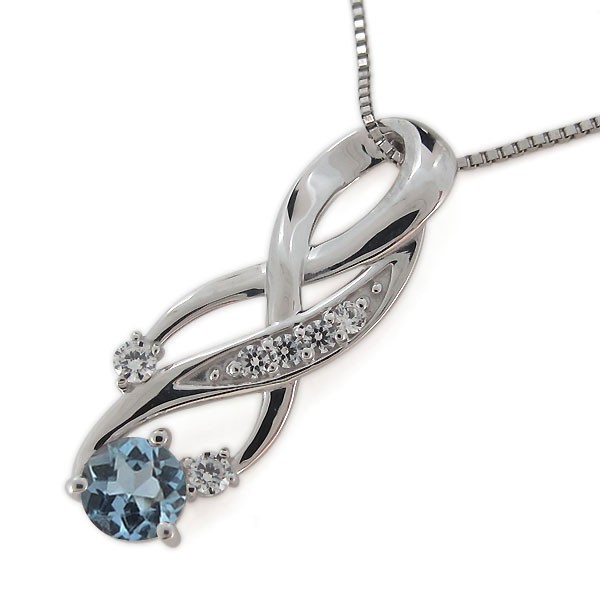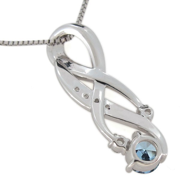 3月誕生石アクアマリンサンタマリアを使用したプラチナ製の、流れ星のような美しい曲線が、エレガントなネックレス(ペンダント)です。
