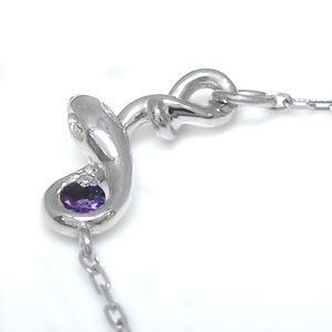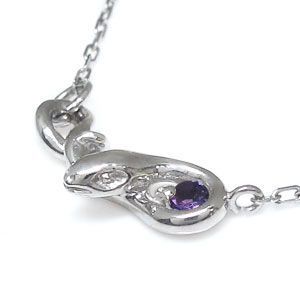 2月誕生石アメジストを一粒使用したプラチナ製の、スネーク(蛇)モチーフ・ネックレスです。