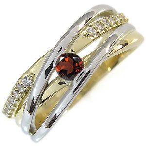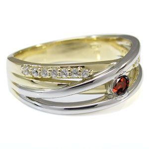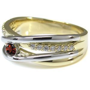コンビ リング 18金 プラチナ 一粒 ガーネット 指輪1月誕生石ガーネットを一粒使用した、18金とプラチナ製のコンビリング(指輪)です。