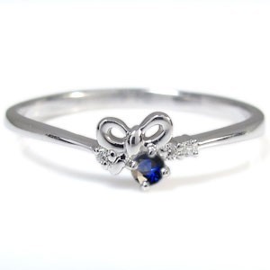 9月誕生石サファイアを一粒使用した、シルバー製のリボンモチーフリング(指輪)です。