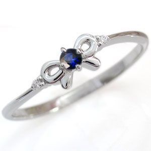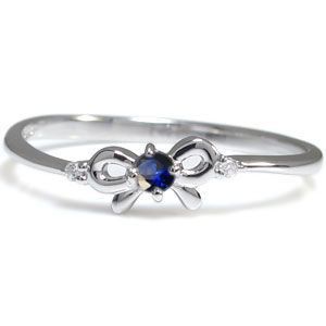 9月誕生石サファイアを一粒使用した、プラチナ製のリボンモチーフリング(指輪)です。